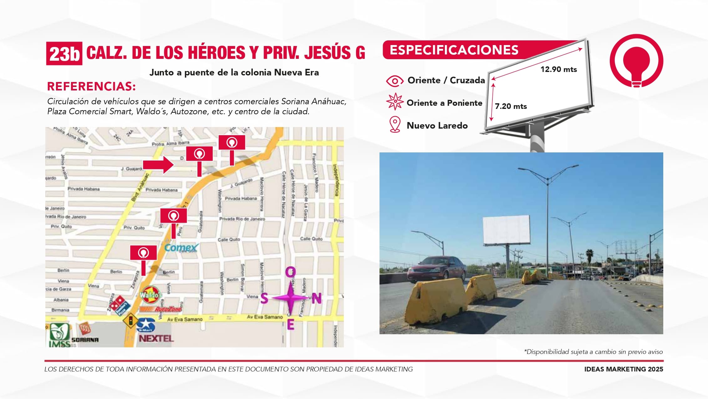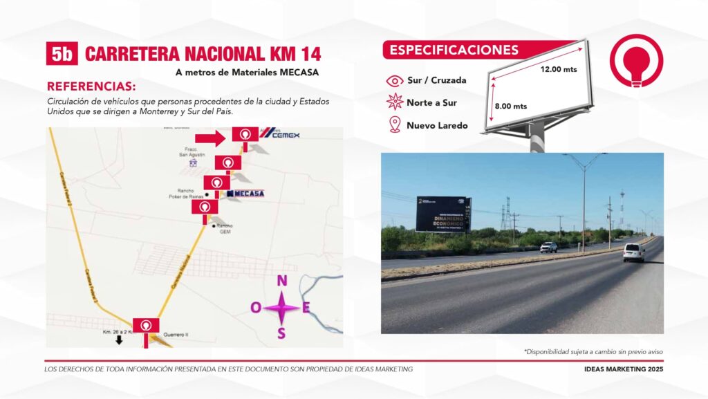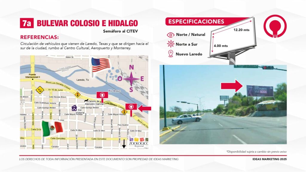 Conecta con miles de clientes potenciales que transitan diariamente hacia Puentes Internacionales, zonas comerciales y salidas a carretera.